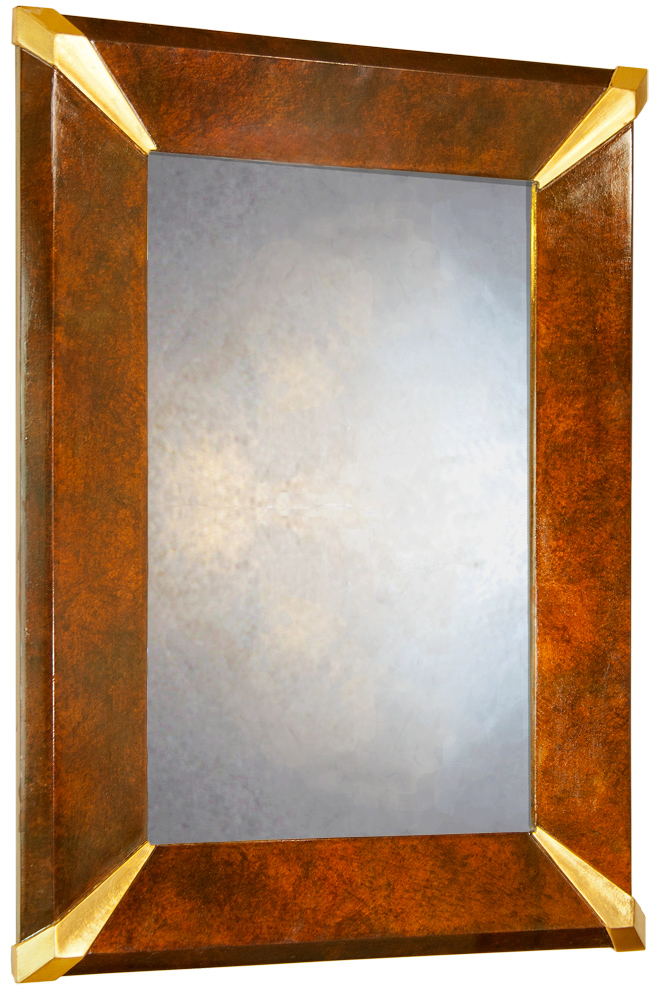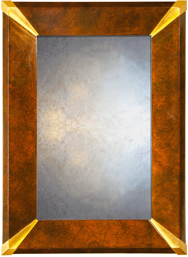 The Fluted Corners of this Art Deco Wall mirror are authentic, true to period design details that contrast nicely with the speckled copper of the sides.