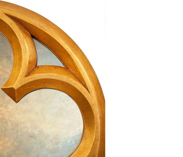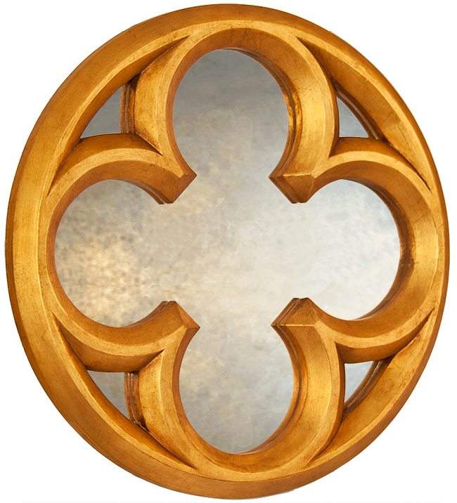 A wonderful ornate handmade Gothic Quatrefoil Round Mirror gets it’s name and design inspiration from a classic Gothic design device called a ‘quatrefoil’ which derives from the old French for ‘four leaves’. The credentials of these intriguing Gothic mirrors need no further explanation and the authentic true to period gilded gold or silver mirror finishes completes the look and makes it an arresting and unique mirror.