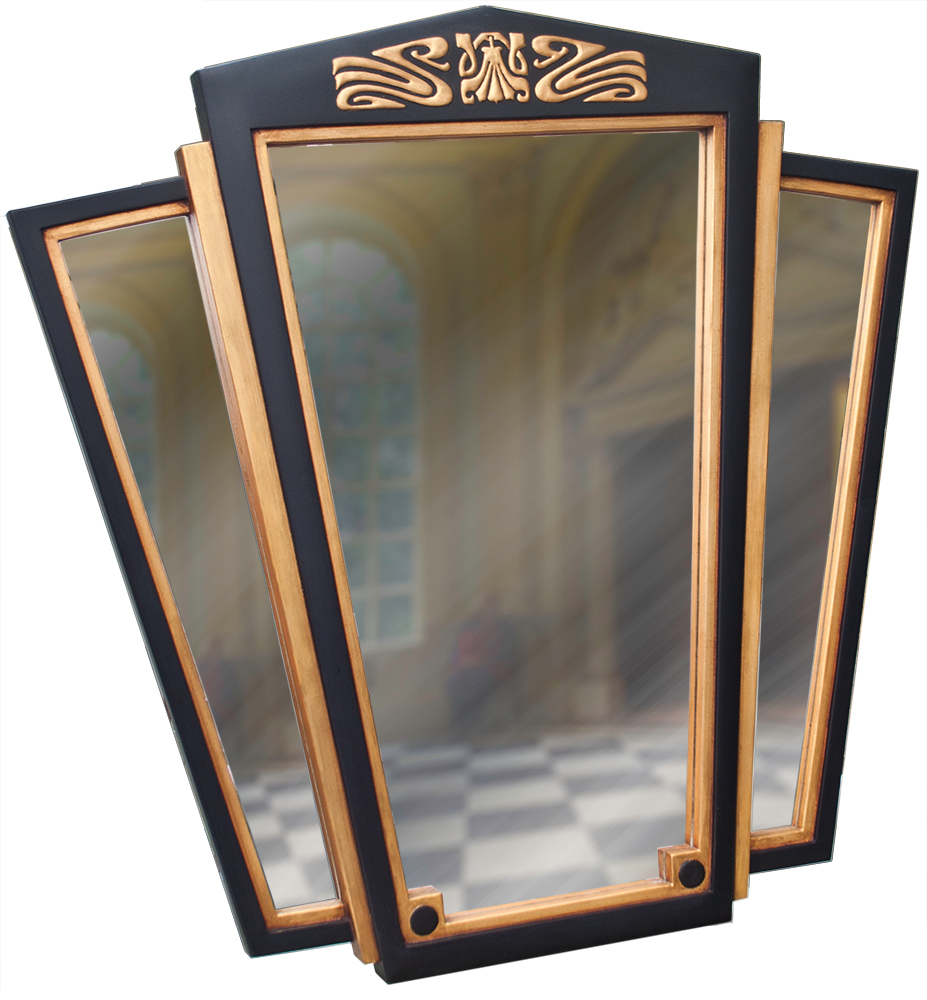 This large Art Deco inspired decorative mirror with its classic Liberty mirror styling makes a wonderful centre piece. Subtle use of gilding to pick out the flutes & ornament enhances the Deco credentials of this striking mirror.