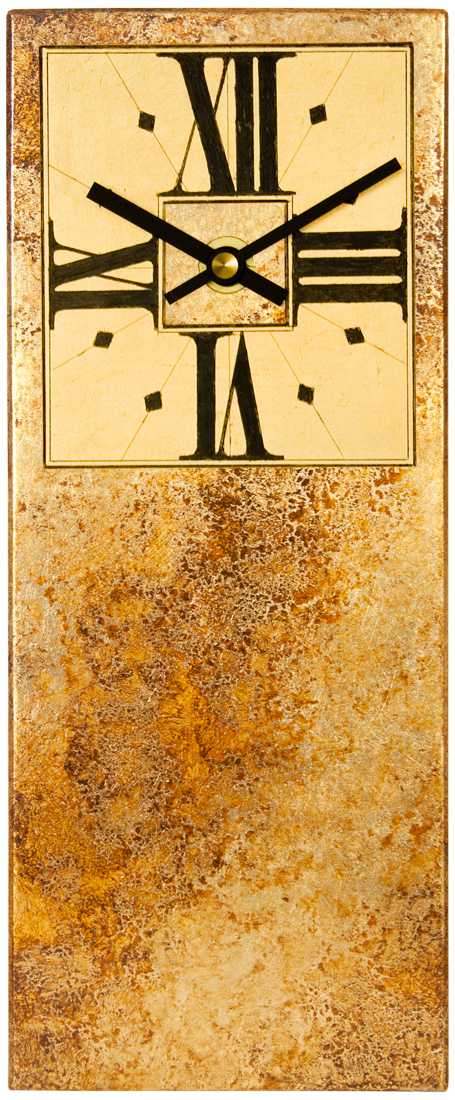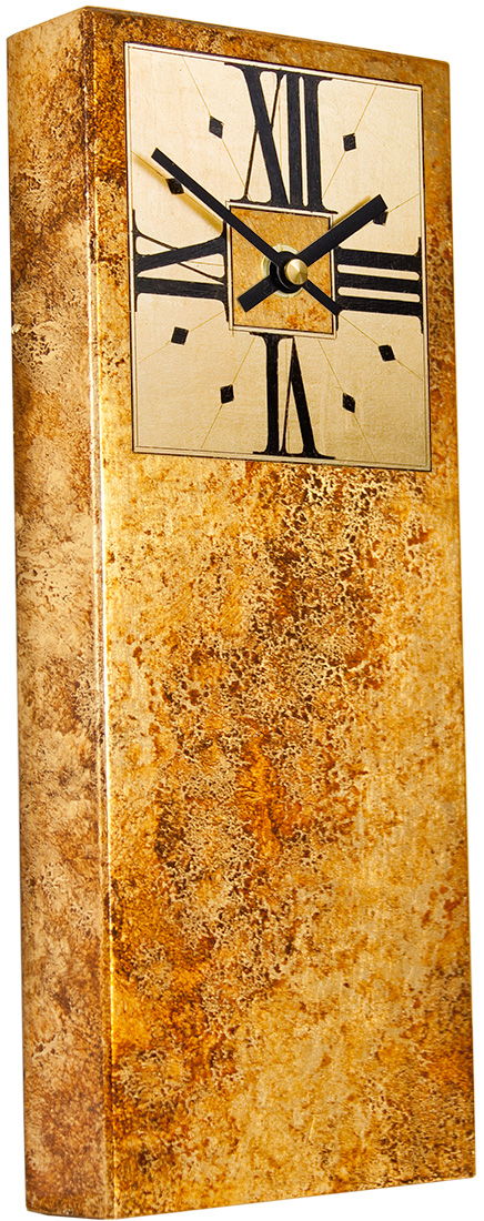 In keeping with the handmade nature of my mantle clocks the dials are gilded gold & the numbers are hand etched. They can also be customised to your size requirements.