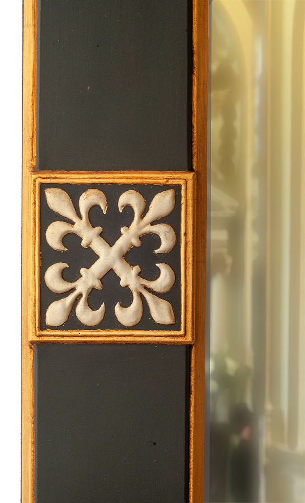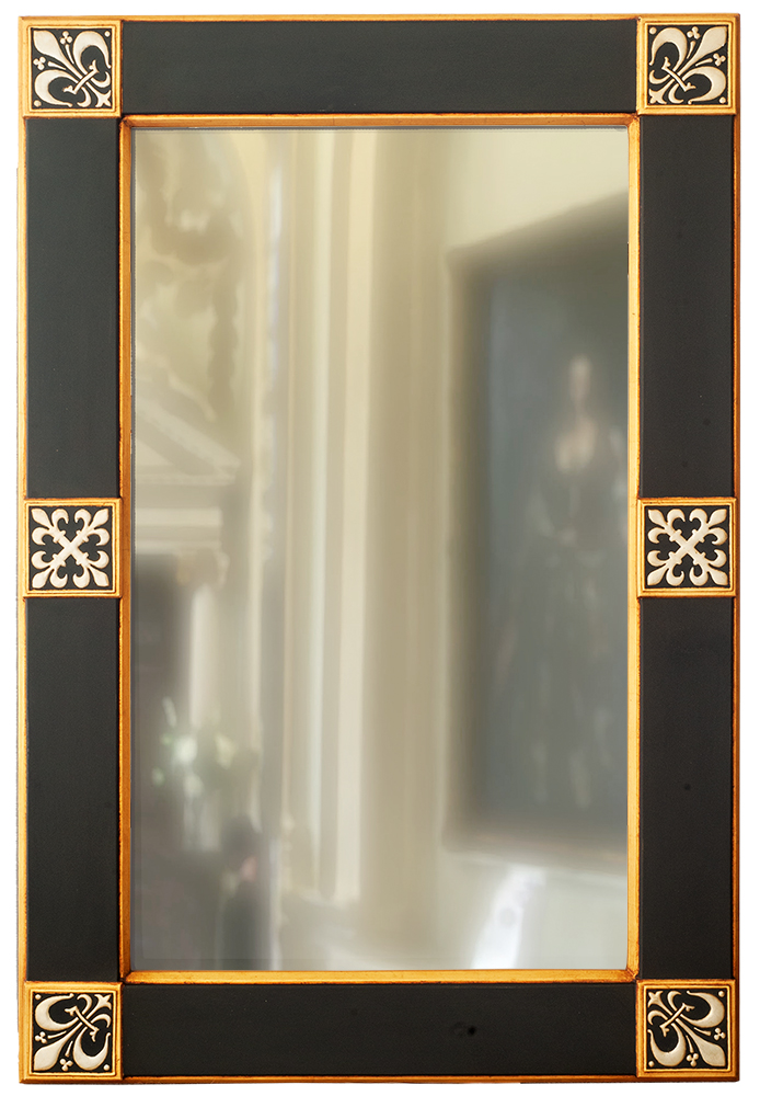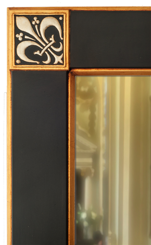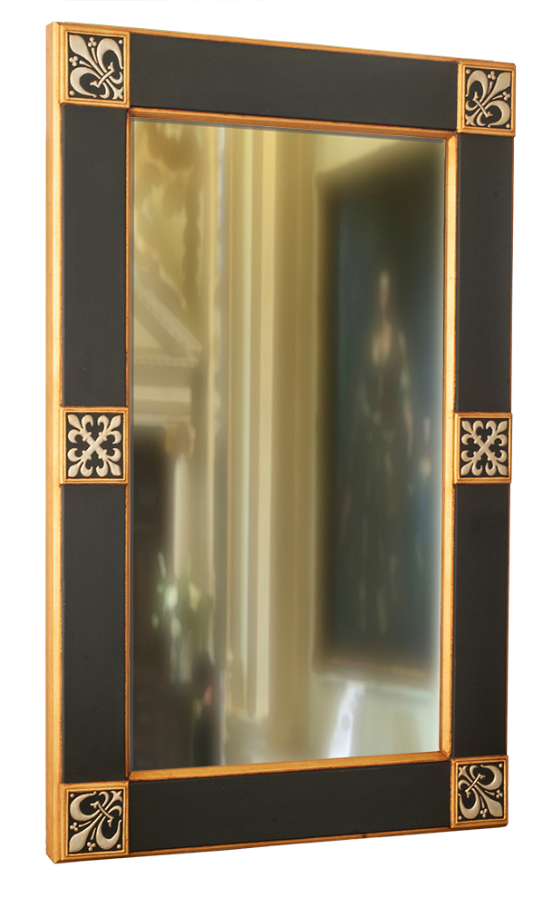 The decorative heraldic devices that distinguish this Gothic Mirror are typical of the period as are the silver and gold gilded leaf finishes that I have used to pick them out.