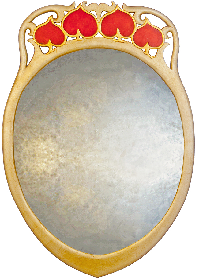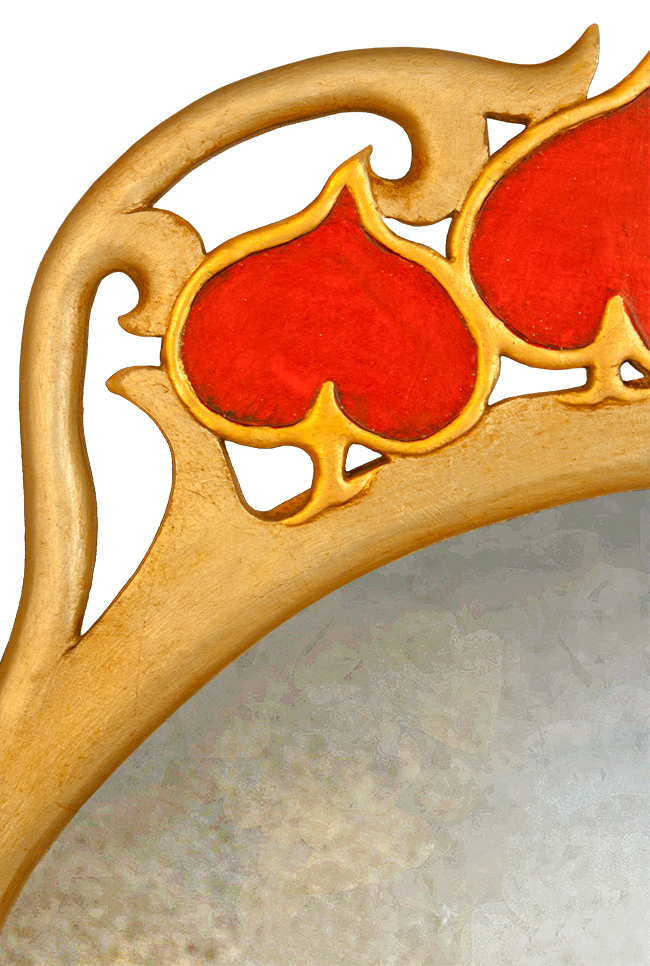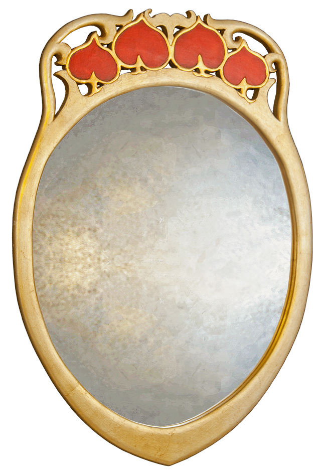 rarativeA beautiful Archibold Knox inspired Liberty Art Deco Mirror with it’s gilded silver mirror finish & coloured fretted, floral pediment detail typical of the designers work.