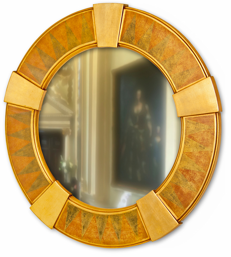Round Art Deco Key Stone Wall Mirror