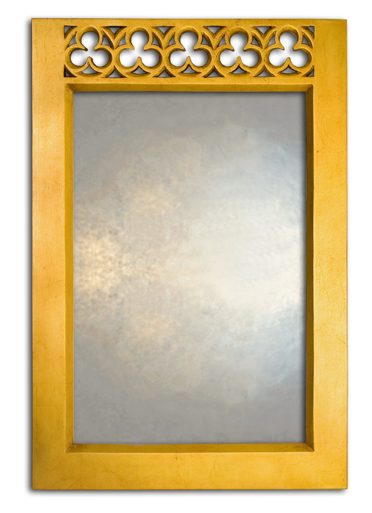 This decorative mirror gets its name from the fretted decorative detail at the top of this Gothic overmantle. The detail is a ‘trefoil’ which derives from the old French for ‘three leaves’. In keeping with the Gothic styling the mirror is finishes in a choice of antiqued gold or silver gilded mirror finishes.